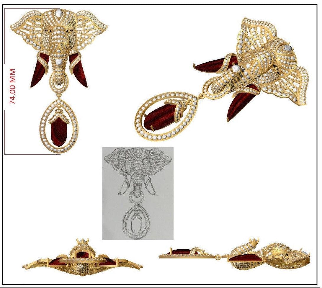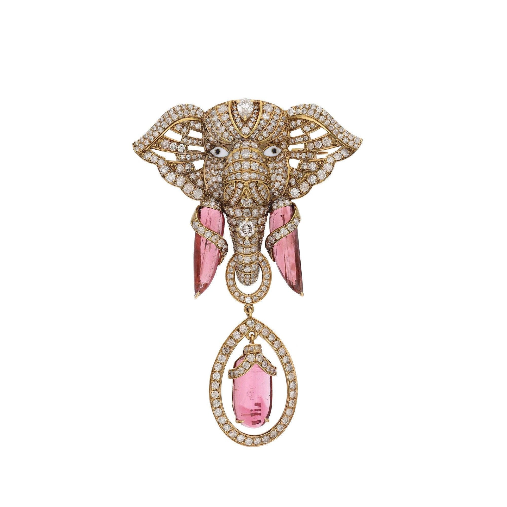 Elephant Brooch Pendant 18k Gold Jewellery / Tourmaline Gemstone Brooches For Men / Diamond Animal Jewelry / Gift For Father